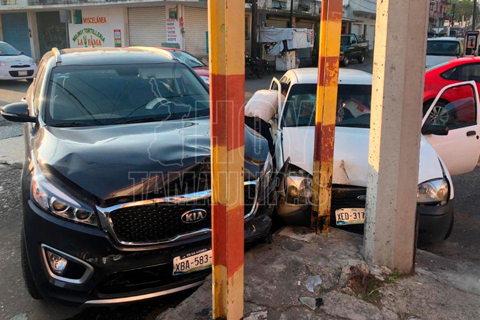 Tampico, Tamaulipas. - Dos mujeres lesionadas y daños materiales de consideración, dejó como saldo un fuerte choque entre una camioneta y un automóvil cuyo conductor presuntamente omitió un alto en el centro de Tampico.