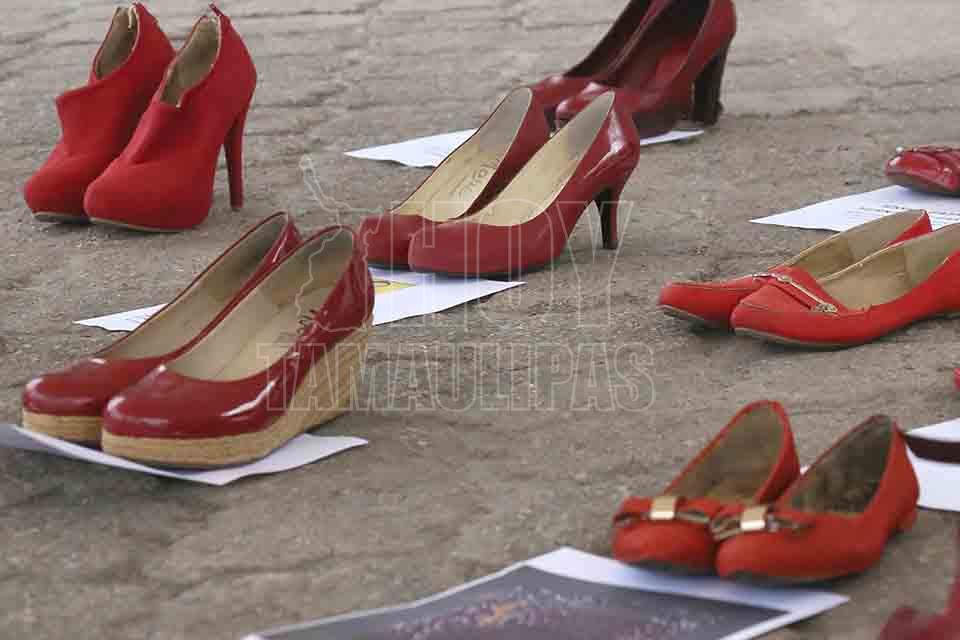 Ciudad Madero, Tamaulipas. - El regidor de Morena en Ciudad Madero, Rafael Castro, se "midió" unos zapatos rojos que representaban a una de las víctimas de feminicidios en la zona sur de Tamaulipas; una de las testigos lo consideró una burla.