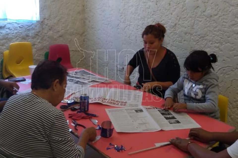 Ciudad Madero, Tamaulipas. - Mujeres, hombres, niños y niñas maderenses de diversas colonias, participan en el taller de elaboración de piñatas y artículos navideños que se lleva a cabo en los tamules de las colonias 15 de Mayo, Ampliación Revolución Verde y Lucio Blanco sector Francisco Villa, con motivo a la cercanía de la temporada decembrina.