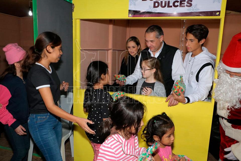 Asimismo, con alegría el munícipe junto a su familia, síndicos y regidores, entregaron bolsitas de dulces a niños y niñas quienes gozaron de los villancicos, el show infantil de Miguelito Copetón, pastorelas, dulces, piñatas, el divertido rally navideño y la pista de hielo.
