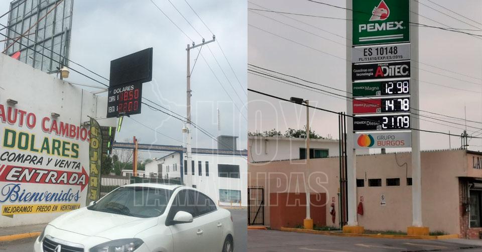 Sigue a la alza el dólar y baja la gasolina en Reynosa