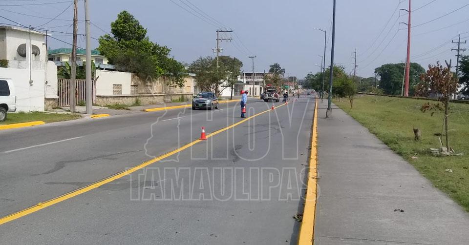 Ciudad Madero, Tamaulipas. - Trabajos de mantenimiento fueron realizados sobre principales vialidades de la urbe petrolera, como parte de las acciones del Gobierno Municipal a través de la Dirección de Tránsito y Vialidad, para dar mayor certidumbre a conductores y peatones de la zona sur de Tamaulipas.
