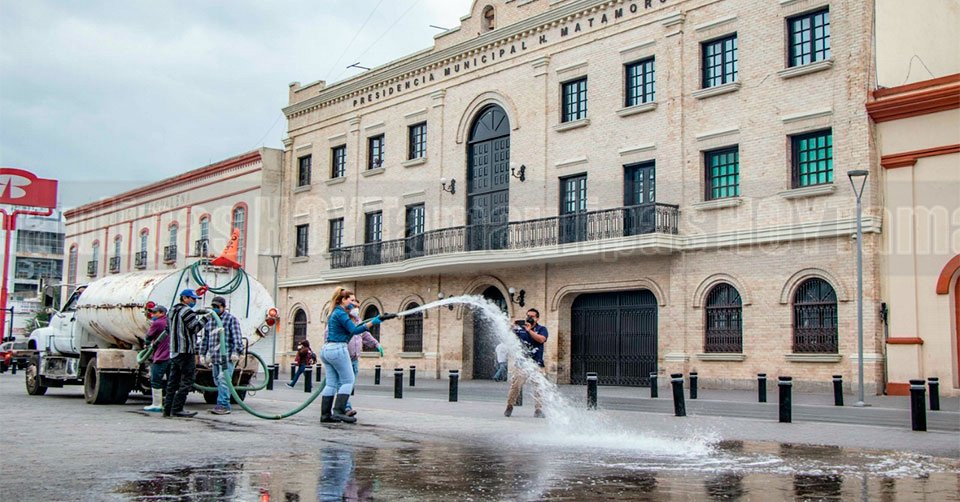 También se lavó el adoquín, acciones que estuvieron a cargo de 20 empleados de la citada dependencia, quienes al concluir se trasladaron a la Plaza Allende, ubicada también en el centro histórico de Matamoros para realizar un trabajo similar al de la plaza principal.