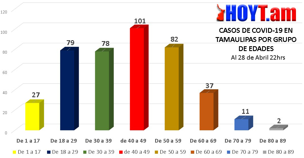 En Tamaulipas, hasta la noche del martes se tenía contabilizados 444 casos, en este estudio faltan 27 casos de los que no se contó información sobre sus edades.