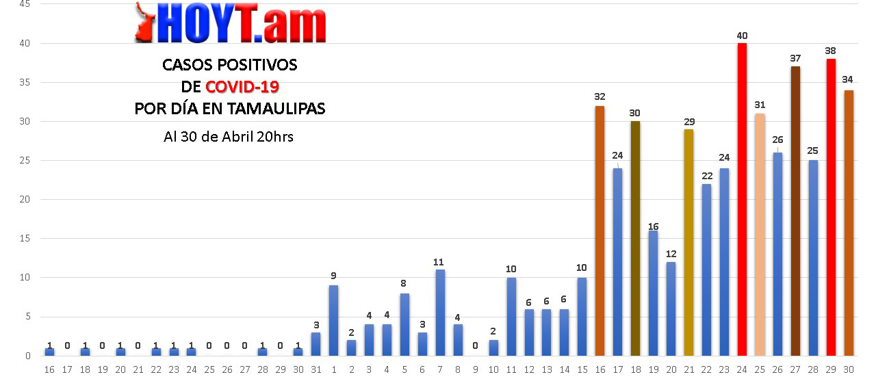 Al cierre de abril, la capital de Tamaulipas, se convirtió en el epicentro de la pandemia al registrar 115 infecciones, muy de cerca está Matamoros con 103 casos y Tampico con 90.