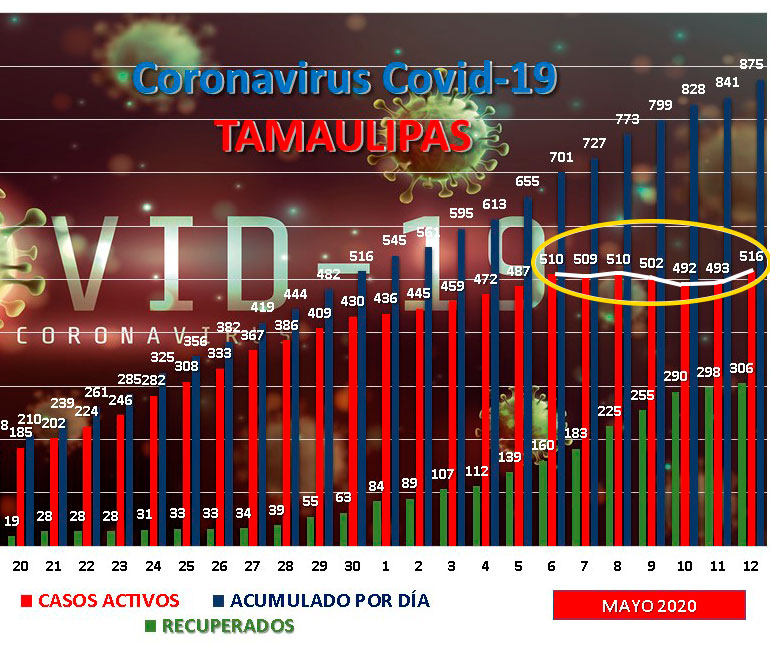 Desde que inició el primer contagio en Tamaulipas hasta anoche, en Tamaulipas 306 personas habían recuperado su salud y otras 53 habían perdido la batalla contra el coronavirus.