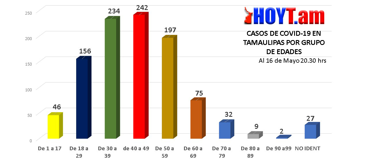 Desde que se confirmó el primer infectado por Coronavirus, que fue el pasado 16 de marzo, el grupo de edad más castigado en contagios, son los que tienen entre 40 y 49 años de edad. Hasta anoche, la cifra era de 242.
