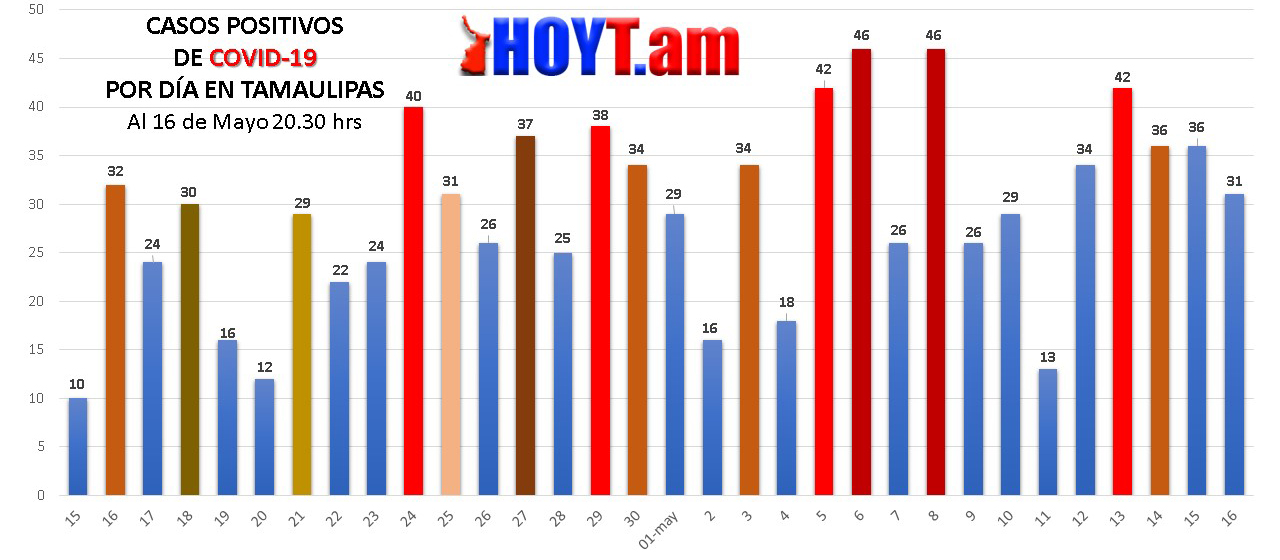 En la Número 20, solamente el 13 de mayo se tuvieron 42 casos, los demás días estuvieron por debajo de los 36 positivos.