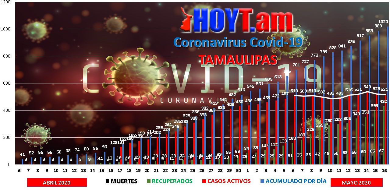 Tamaulipas llegó ayer sábado a los 1,020 casos positivos a Coronavirus Covid-19, pero en la semana epidemiológica 20, no se registraron picos importantes como en la anterior cuando en dos ocasiones se tuvieron hasta 46 casos por día.