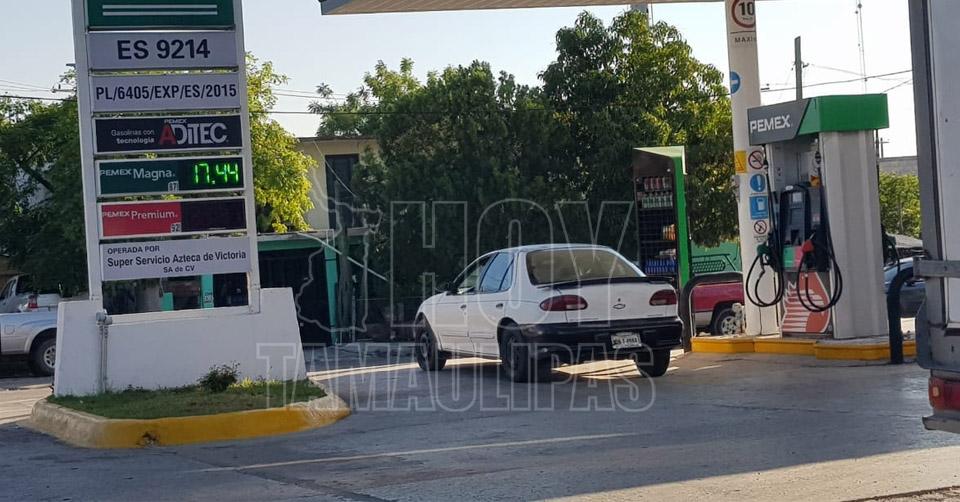 Aunque el día de ayer el precio en la gasolina pareciera estable, el día de hoy en la gasolinera Pemex Cualli ubicada en la salida a Soto La Marina y Libramiento Naciones Unidas se encuentra en $17.90, en $17.97 la Premium y el Diésel en $18.39.