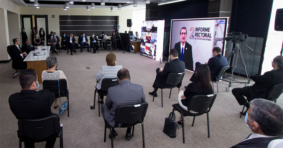 Para prevenir riesgos de contagio por el COVID-19, el evento se realizó en la modalidad a distancia desde la Sala de Juntas del Centro de Gestión del Conocimiento del Campus Victoria, transmitido a las diferentes sedes de la UAT con la participación en línea de los directivos y representantes de maestros y alumnos de las 26 Facultades, Unidades Académicas y Escuelas Preparatorias que integran la Asamblea Universitaria.