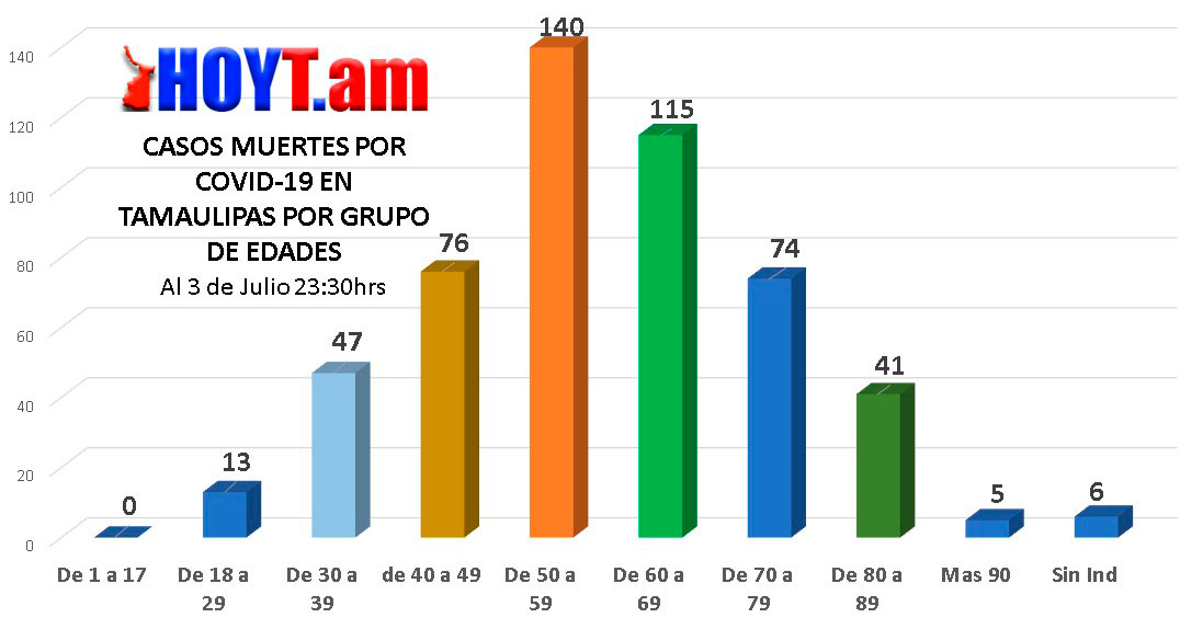 También el Covid-19 ha matado a 13 personas entre 18 a 29 años. La más joven tenía 19 años y era de Altamira, Tamaulipas.