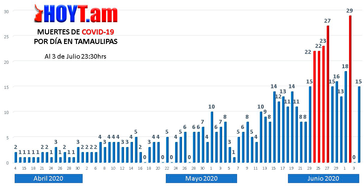 El 28 de junio, el primer día de la Semana Epidemiológica 27, el número de caso activos en Tamaulipas era de 3 mil 429 personas infectadas. Este número se obtiene del total de casos positivos, menos las personas que lograron recuperar su salud y las que lamentablemente murieron.