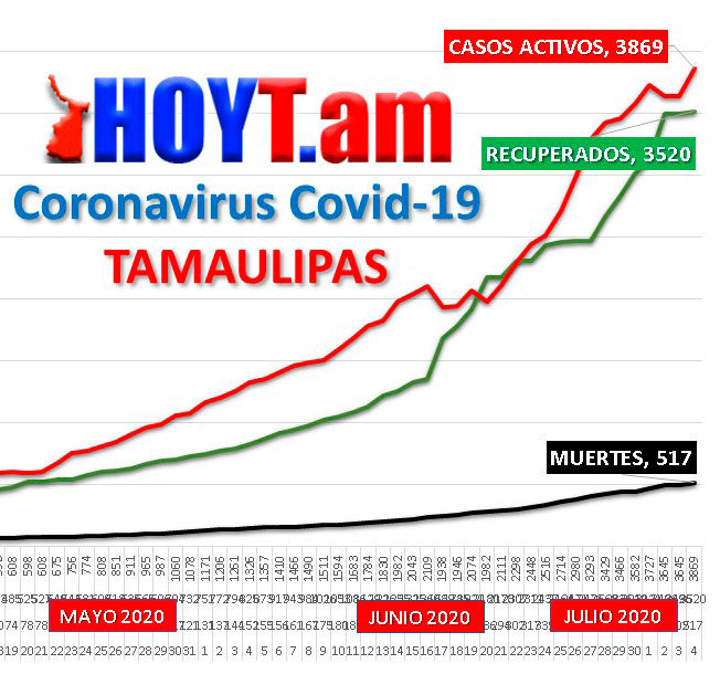 Ayer sábado, el total de casos activos era de 3 mil 869 tamaulipecos contagiados.