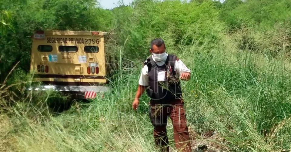 Matamoros, Tamaulipas. - El conductor de un camión de valores cargado millones de pesos perdió el control del volante tras pasar por una piedra, para luego chocar contra un poste y acabar afuera de la carpeta asfáltica en Matamoros.