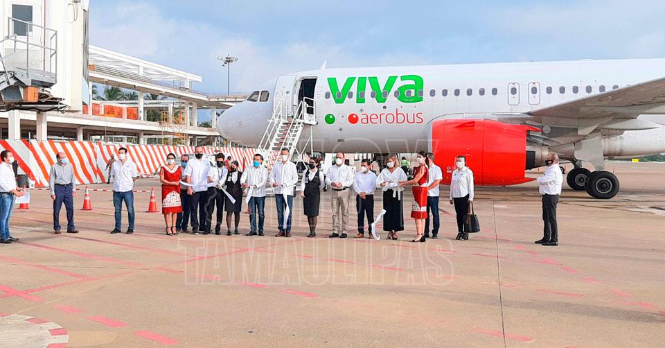 Tampico, Tamaulipas. - Con la llegada de la Ciudad de México del primer vuelo de la aerolínea VivaAerobus al Aeropuerto Internacional de Tampico quedó inaugurada una nueva ruta, con la cual Tamaulipas incrementa la conexión con otras entidades.