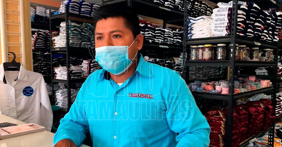 Altamira, Tamaulipas. - Comerciantes de uniformes en Altamira no tienen ventas e incluso tampoco hay solicitudes de nueva modalidad que incluya cubrebocas, informó el empresario del rubro Geremias Alejo Torres.