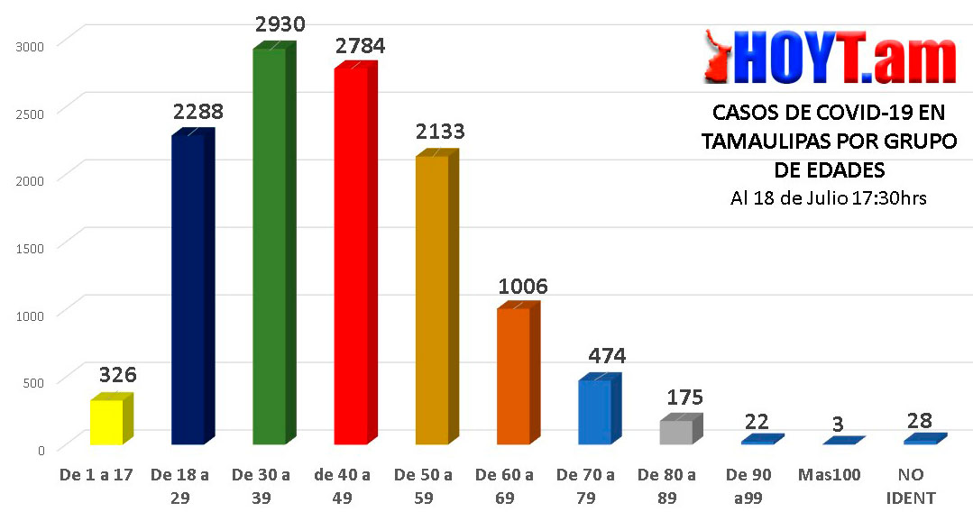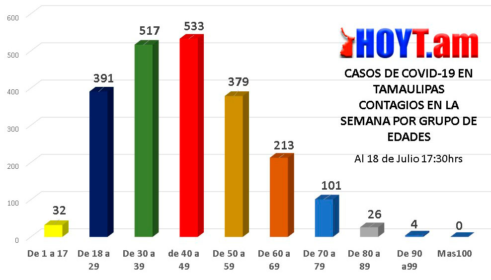 Por ejemplo, el grupo de 40 a 49 años registró en esta semana 533 nuevos contagios, llegando a los 2 mil 784, mientras que los de 30 a 39 años tuvieron 517 infecciones y mantienen el récord con 2,930 casos.