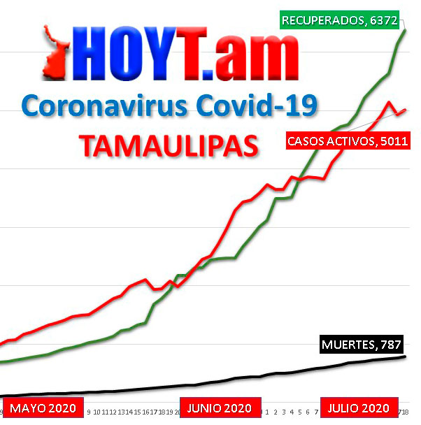 Según las cifras de la Secretaría de Salud, el número de contagiados al Covid-19 desde que inició la enfermedad en Tamaulipas son 12,170 personas y de estas 6,372 han recuperado su salud y otras 787 han muerto. La diferencia son 5 mil 11 casos que están actualmente activos en el Estado.