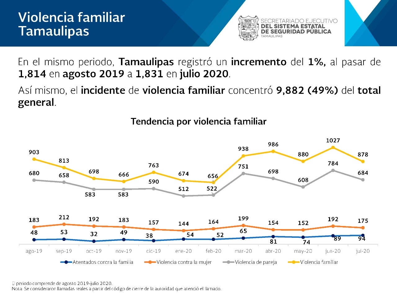 Se hicieron 20 mil 371 llamados por violencia familiar en Tamaulipas en un año