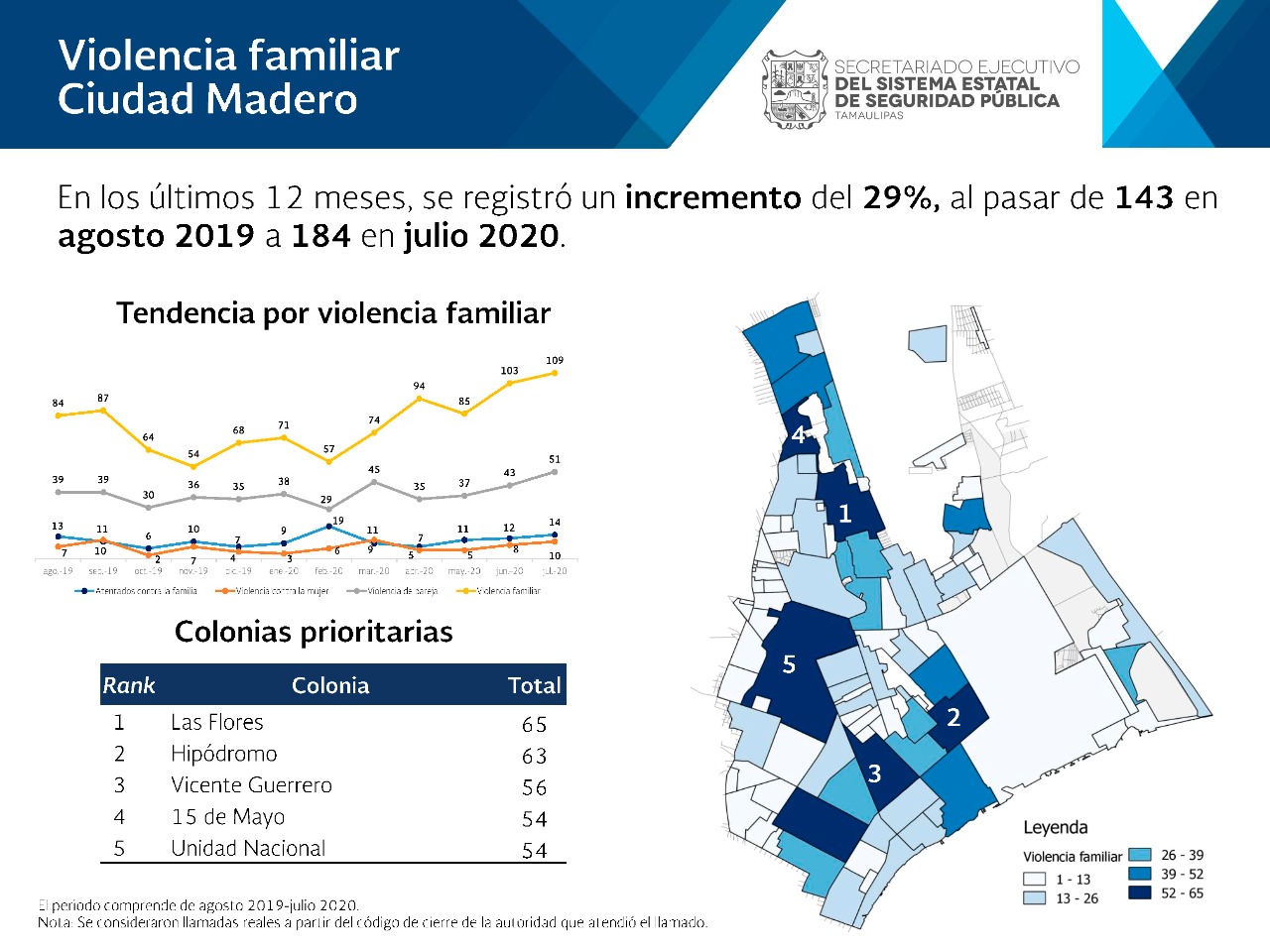 En Ciudad Madero el aumento de las llamadas por violencia familiar fue del 29 por ciento, siendo Las Flores, Hipódromo, Vicente Guerrero, 15 de Mayo y unidad Nacional las colonias consideradas como prioritarias.