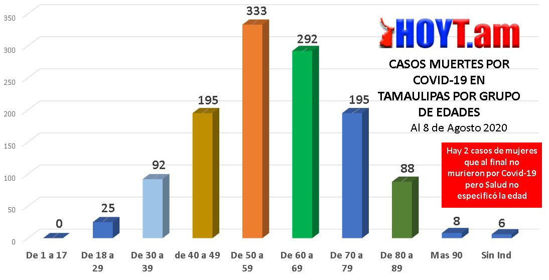 Hasta anoche, en Tamaulipas se habían contagiado 1,953 personas del virus, con datos hasta el 6 de agosto, faltando contabilizar los del 7 y 8 que conforman la Semana Epidemiológica No. 32.