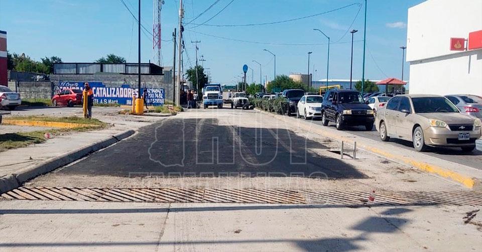 Nuevo Laredo, Tamaulipas. - Personal de la Jefatura de Bacheo de Servicios Públicos Primarios, concluyó los trabajos de reparación de la calle Eva Sámano de López Mateos, en el cruce con Calzada de los Héroes y quedó reabierta la circulación a los automovilistas.
