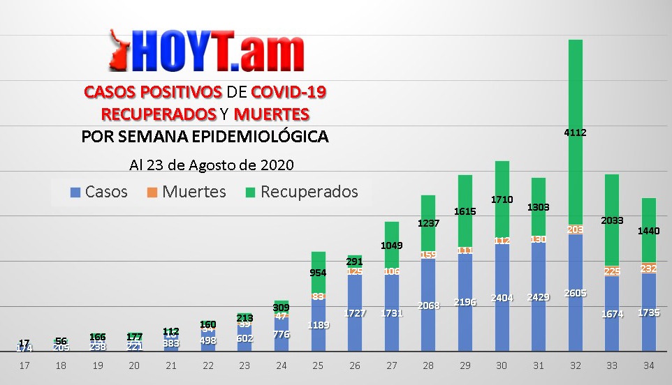 Ciudad Victoria, Tamaulipas. - Un total de 1,735 tamaulipecos contrajeron el virus Sars-CoV-2 que provoca el Covid-19 durante la Semana Epidemiológica 34 que comprendió del 16 al 22 de agosto, lo que representó un incremento del 3.65 por ciento en comparación a la anterior.