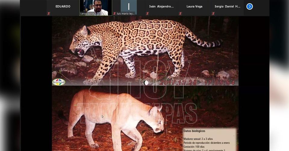 Al dictar la ponencia virtual “El jaguar y el puma de los felinos más grandes del continente”, en evento organizado por la Facultad de Medicina Veterinaria y Zootecnia (FMVZ), el investigador del Instituto de Ecología Aplicada (IEA) de la UAT refirió el trabajo que ha desarrollado la universidad para contribuir a mantener las poblaciones de jaguar y puma, destacando que se cuenta con un importante corredor biológico entre Tamaulipas y San Luís Potosí.