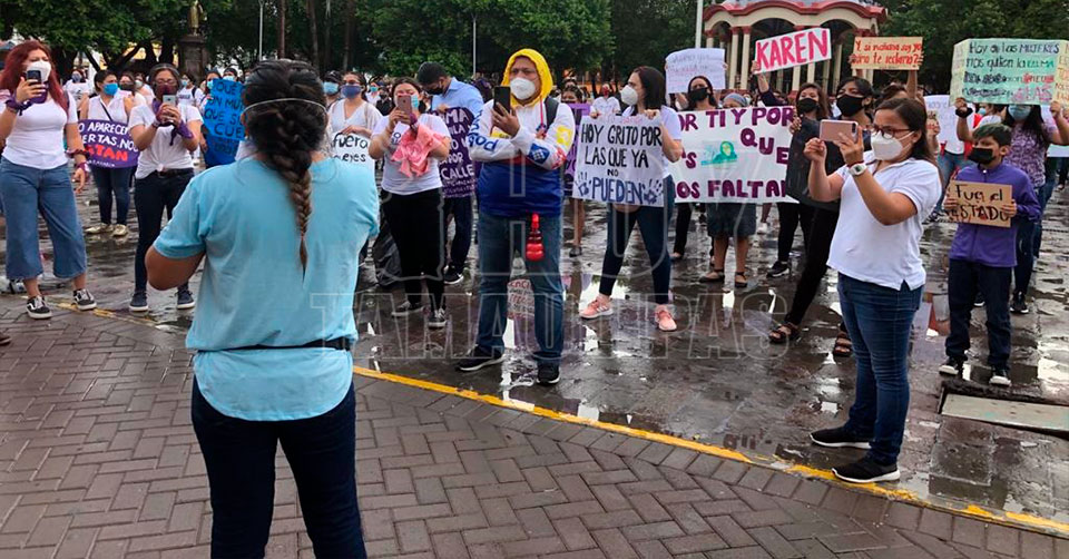 Matamoros, Tamaulipas. - Con el grito de “justicia, justicia” y “ni una menos”, este domingo se manifestaron alrededor de 200 personas para protestar por el asesinato de la joven Karen Berenice López y la desaparición de otras mujeres en Matamoros.