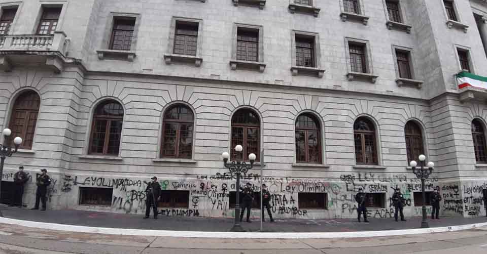 Feministas vandalizan Palacio Municipal de Tampico con pintas y destrozos
