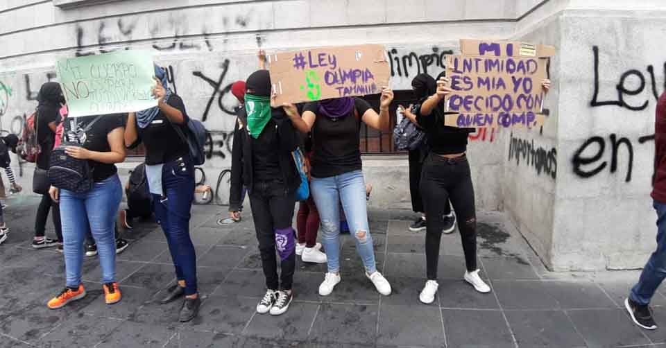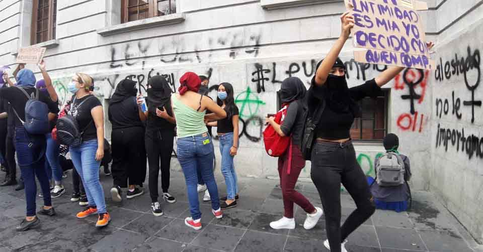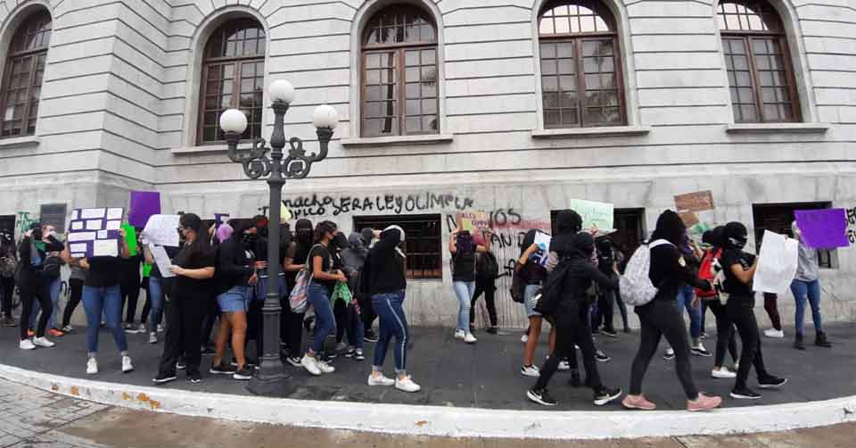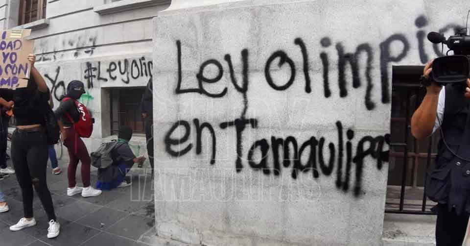 Tampico, Tamaulipas. - Al menos 100 feministas vandalizaron el Palacio Municipal de Tampico con pintas, manchas de pintura y destrozos de ventanas para exigir la discusión de la llamada "Ley Olimpia", denunciando además que sigue la hostilidad hacia las mujeres.