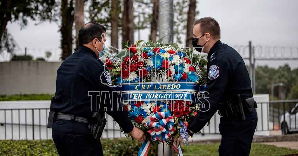 Nuevo Laredo, Tamaulipas. - En la garita del lado norteamericano del Puente Internacional Juárez-Lincoln, que conecta a Nuevo Laredo, Tamaulipas con Laredo, Texas se conmemoró este viernes a las víctimas de los ataques terroristas del 11 de septiembre del 2001.