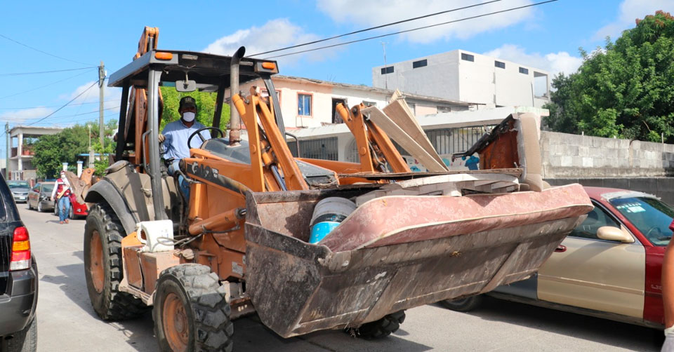 Además de recoger todo tipo de artículos inservibles en cada colonia visitada, los empleados de la Secretaría de Bienestar Social platican con las familias y les informan sobre la importancia de mantener limpios los patios de su casa.