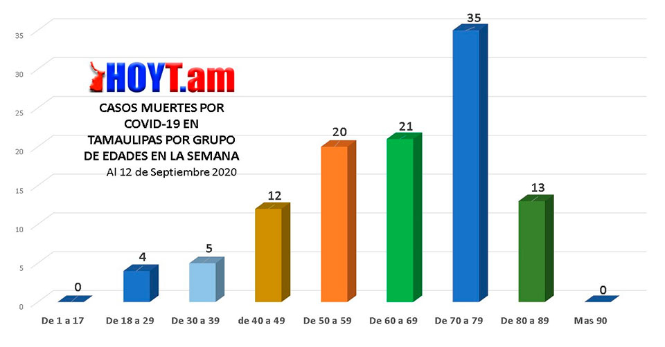 De igual forma, en el grupo de los 60 a 69 años se registraron 21 decesos y otras 20 muertes en las personas de 50 a 59 años de edad.