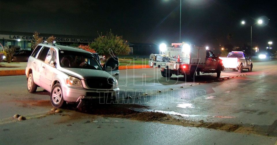 Nuevo Laredo, Tamaulipas. ─ Un ebrio conductor volcó en su camioneta y resultó ileso milagrosamente en Nuevo Laredo, tras chocar a gran velocidad contra un camellón de concreto.