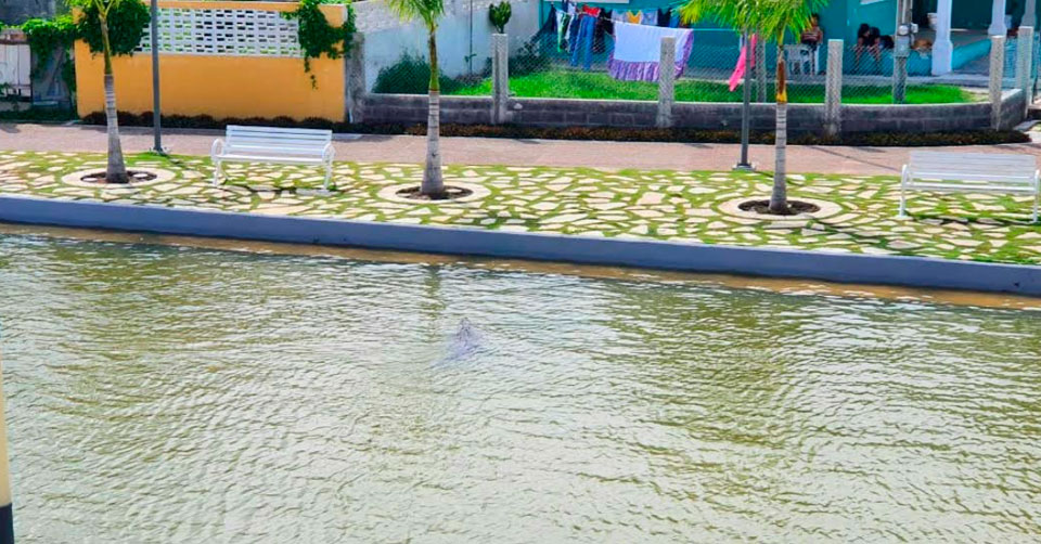 Tampico, Tamaulipas. - Al incrementarse los niveles del río Pánuco y de la Laguna del Carpintero de Tampico, los cocodrilos que tienen su hábitat en el estuario han aprovechado para salir a 'pasear' al Canal de la Cortadura, donde varios vecinos los contemplaron a distancia.