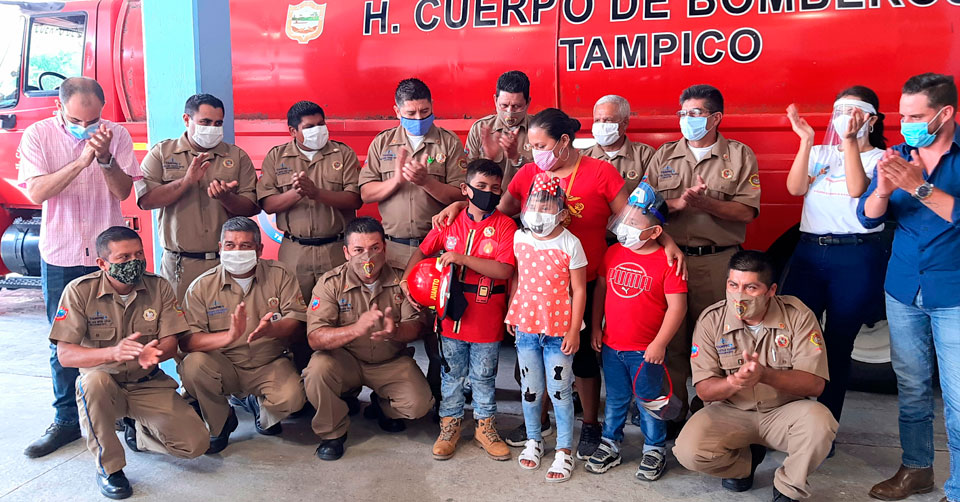 Cumplen en Tampico sueño de Juanito de ser bomberito por un día