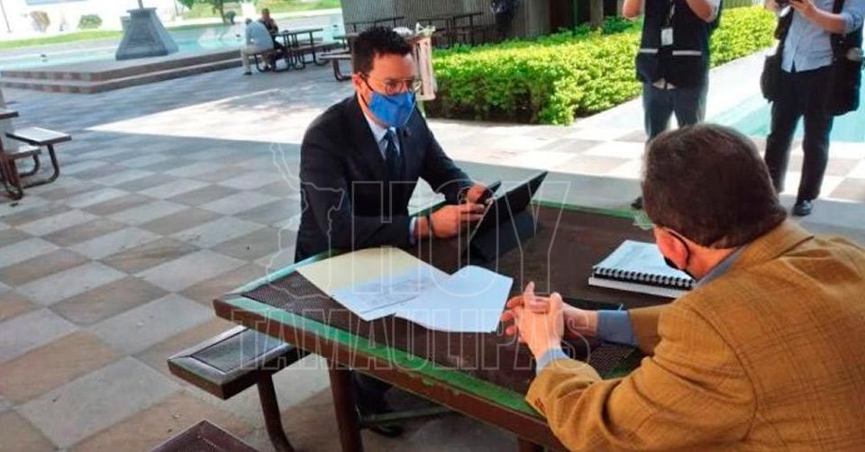 Al arribar a la sede legislativa por la planta baja, el funcionario estatal fue sometido a una prueba rápida, la cual resultó positiva; ante ello tuvo que salir del inmueble y permanecer en una plazoleta aledaña, desde donde realizó su comparecencia vía Internet.