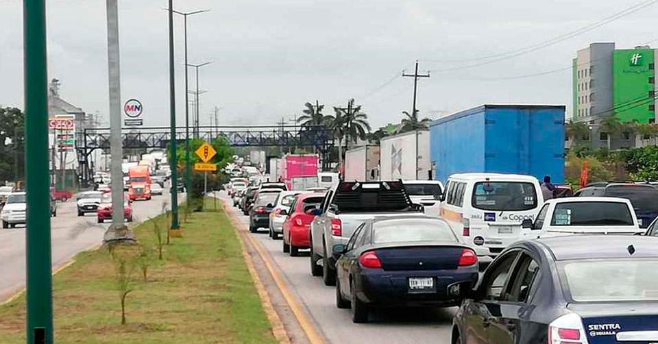 Fue alrededor de las 16:00 horas que se reportó la volcadura en el carril de norte a sur, casi frente al acceso al Fraccionamiento Náutico.