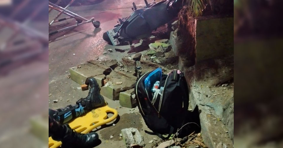 De acuerdo al reporte de Tránsito, se pudo conocer que el accidente ocurrió por el exceso de velocidad con la que era desplazada esta unidad de dos ruedas, ya que en un momento determinado el conductor no pudo controlarla y se estampó contra el macetero de concreto.