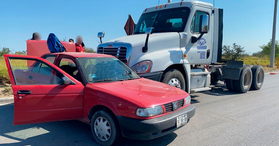 Nuevo Laredo, Tamaulipas. ─ Por cambiar de carril en forma intempestiva, el operador de un tráiler chocó un automóvil compacto y lo arrastró por varios metros en la Carretera Aeropuerto, al sur de Nuevo Laredo.