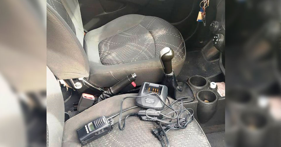 Al revisar el automóvil, se encontró en el interior de la unidad un equipo de radiocomunicación con el que probablemente reportan los patrullajes de las corporaciones de seguridad.