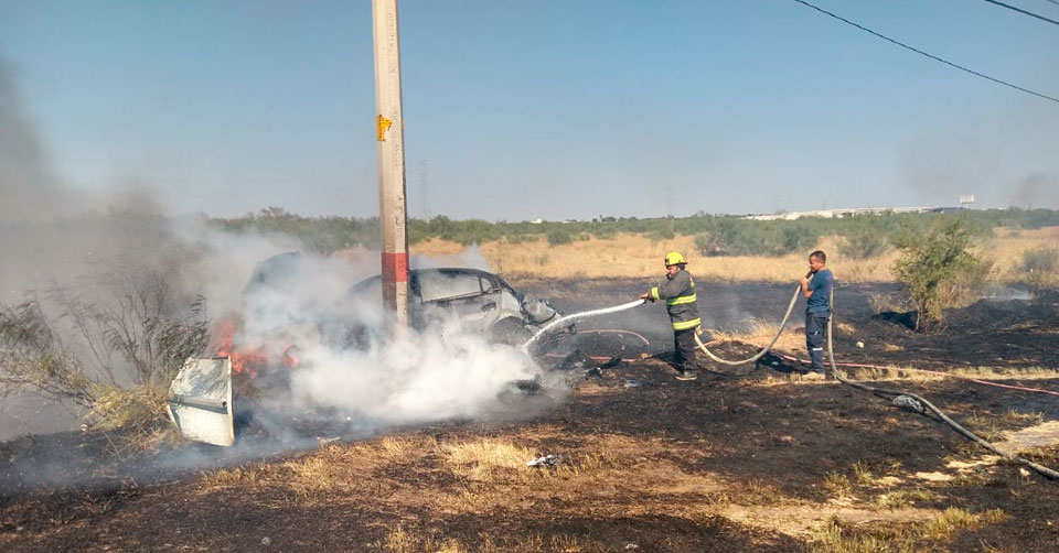 Nuevo Laredo, Tamaulipas. ─ Junto con cuatro menores que viajaban con ella, una mujer se salvó de morir calcinada tras registrarse la volcadura de un vehículo e incendio en la carretera a Anáhuac, al poniente de Nuevo Laredo.