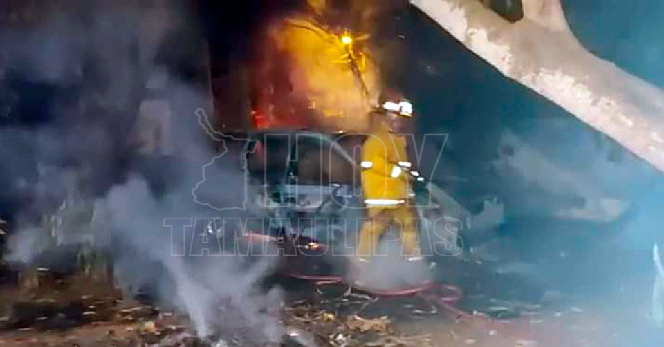 Altamira, Tamaulipas. - Una camioneta terminó completamente calcinada al incendiarse a causa aparente de un corto circuito.