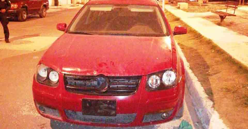 En otra acción, aproximadamente a las 23:50 horas, los efectivos estatales que realizaban patrullaje en el Fraccionamiento Vista Alta, ubicaron sobre la calle Paloma Aurita en condición de abandono un Volkswagen Jetta color rojo con vidrios polarizados, modelo 2011, sin placas de circulación, por lo que se revisó en la base de datos, resultando con reporte de robo de fecha 4 de agosto del presente año.