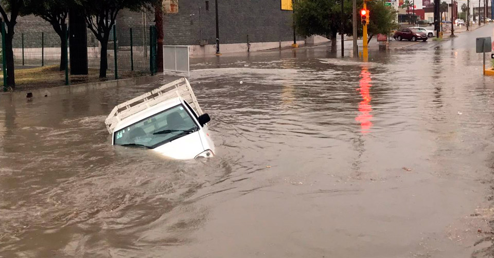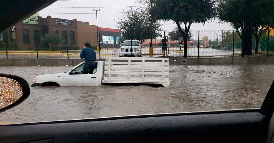 Fuerte lluvia en Reynosa deja inundaciones y un carro varado
