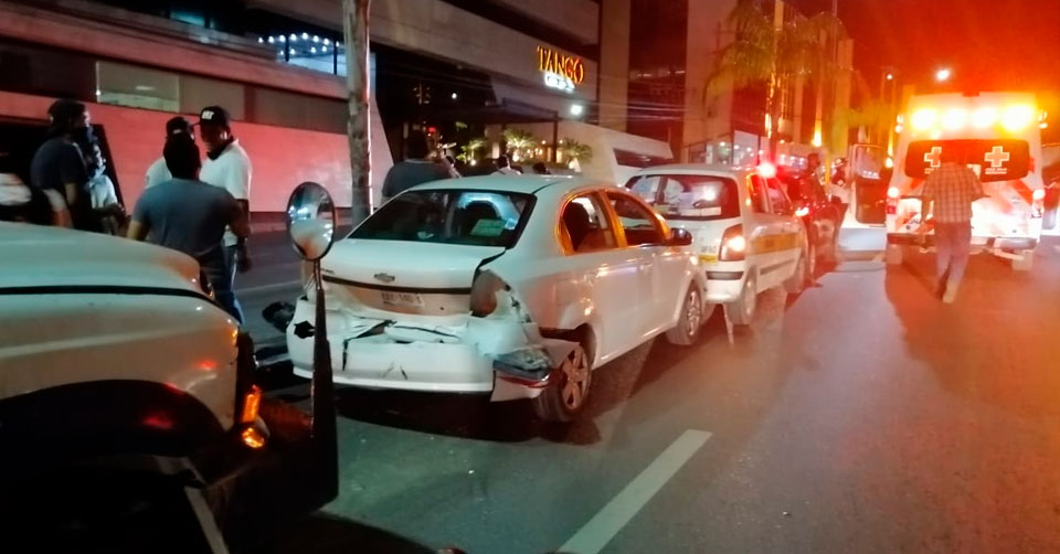 La camioneta blindada de una empresa de valores era conducida de norte a sur, cuando al no guardar la distancia indicada entre vehículos, impactó a un Chevrolet Aveo en color blanco, mismo que a su vez chocó a un Dodge Atos habilitado como taxi y finalmente a un Renault.