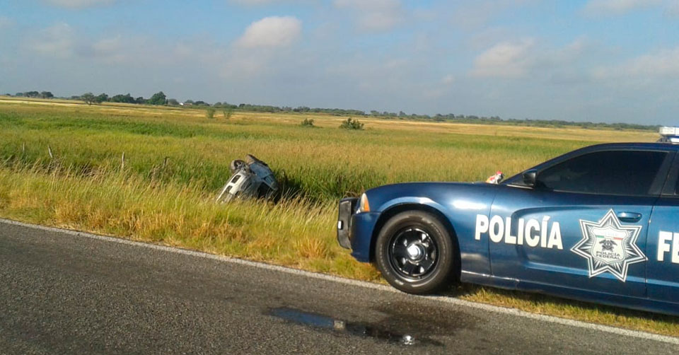 Padilla, Tamaulipas. - Una mujer de 30 años de edad y originaria de Jiménez, Tamaulipas resultó lesionada esta mañana luego de volcar el vehículo que conducía en el kilómetro 52 de la carretera Victoria-Matamoros, en el tramo carretero Padilla-Jiménez.