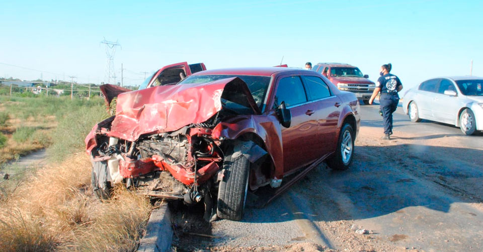 Nuevo Laredo, Tamaulipas. ─ Dos hombres resultaron sumamente lesionados en un accidente frontal registrado en la Carretera Aeropuerto, al poniente de Nuevo Laredo, provocado por un conductor que manejaba ebrio.